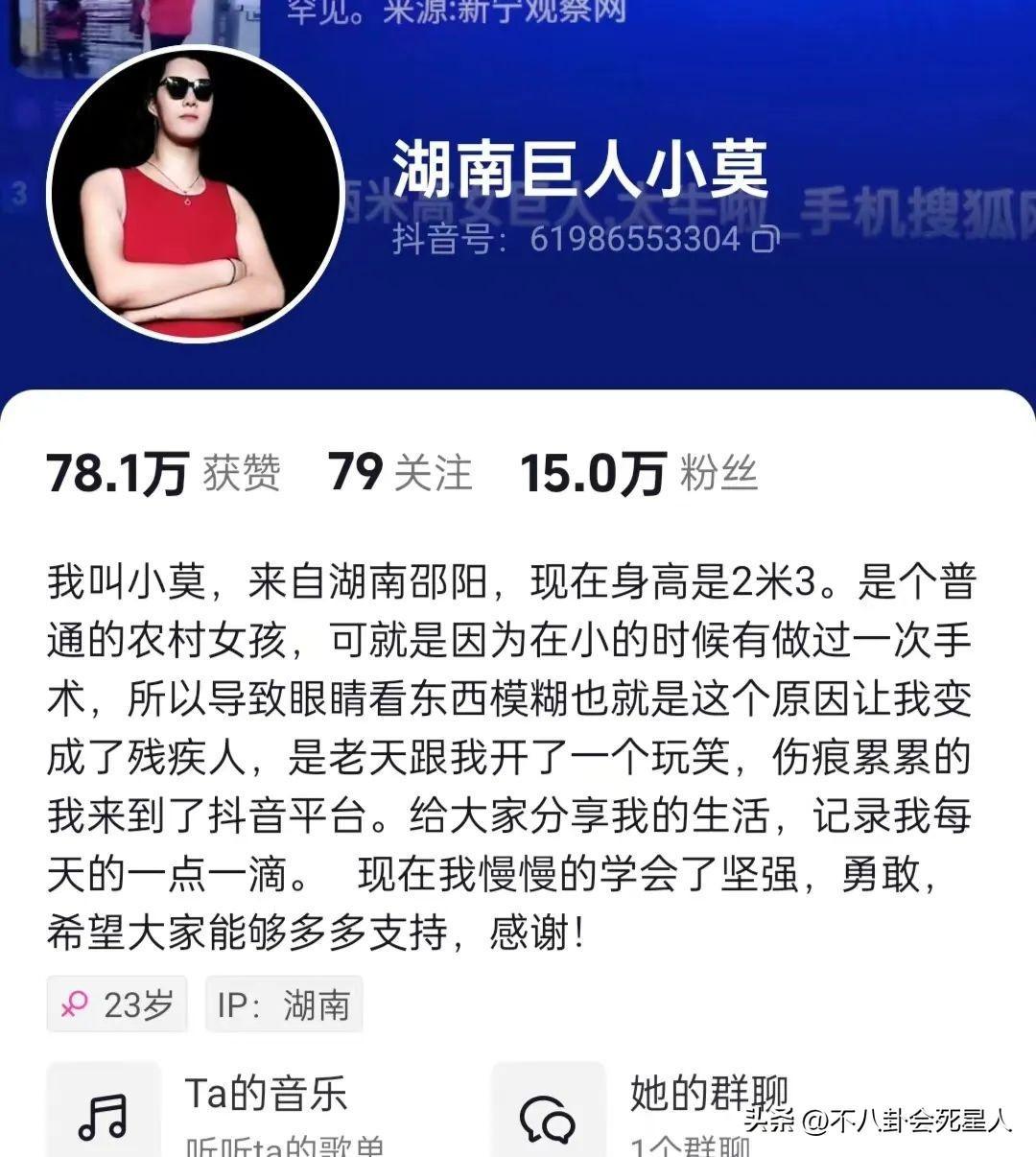 情況是這樣的,在湖南邵陽新寧縣,有個23歲的網紅“巨人小莫”,因爲身高2.3米,所以從小就備受關注。