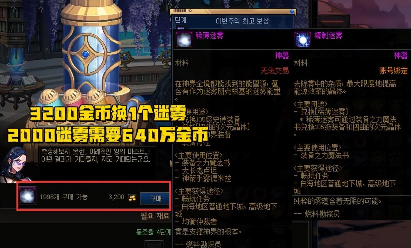如果沒有“迷霧”怎麼辦呢?也可以花錢購買,3200金幣換1個迷霧,每週升級4次消耗2000個迷霧,也就是640萬金幣!