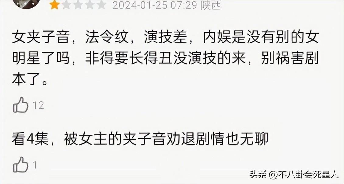 該劇播出後,大部分觀衆都被虞書欣的夾子音勸退,滿屏一星差評。