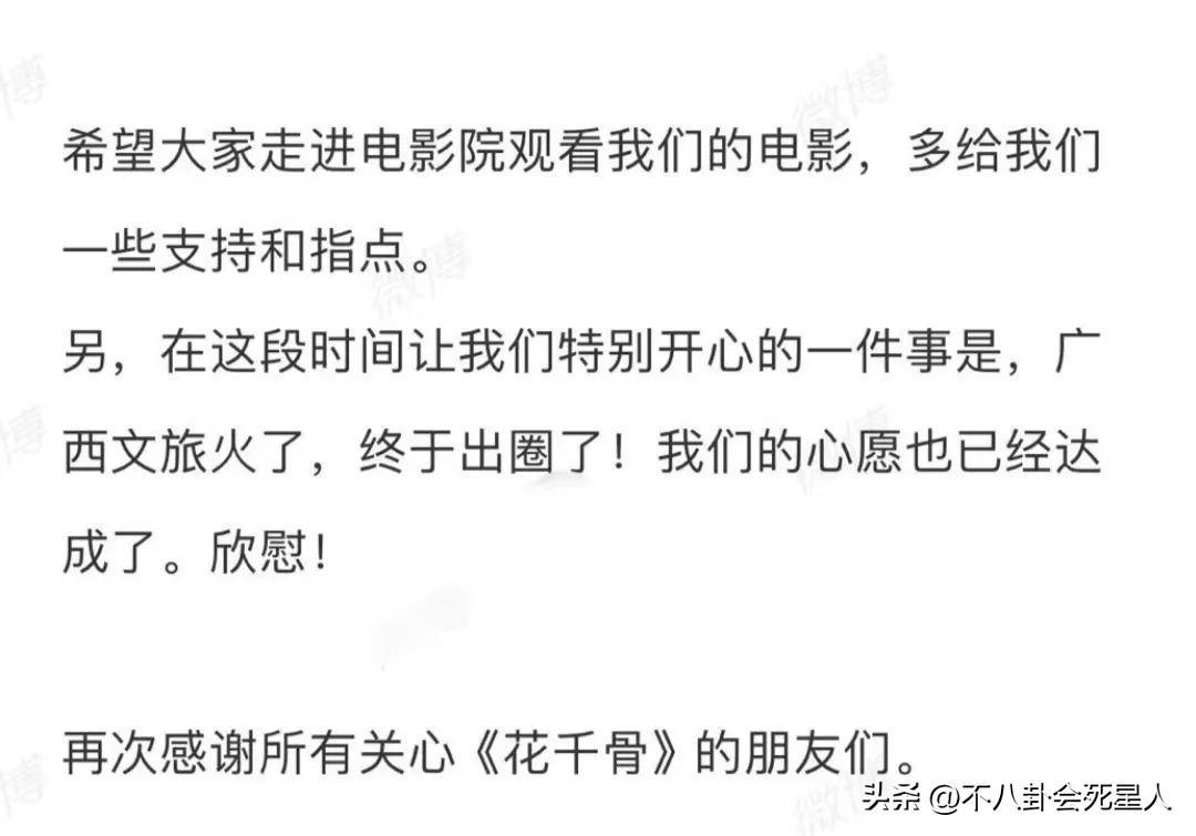 面對大家的吐槽,《花千骨》導演張超理髮布視頻道歉,他說因票房不理想感到意外,對不起團隊,表示這是復工後的第一批電影,非常不容易,希望大家理解和支持。
