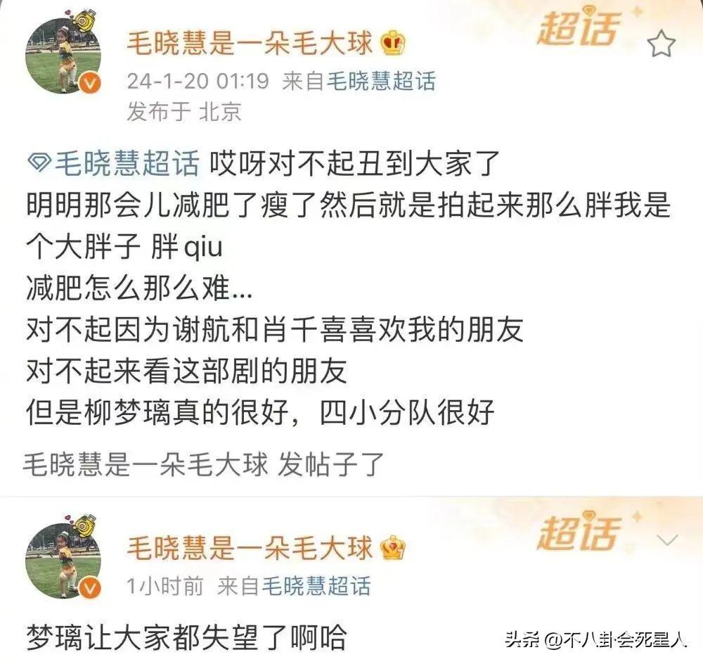 該劇播出後,柳夢璃是被吐槽得最多的,毛曉慧連發數條動態回應,“對不起醜到大家了”,她自稱減肥困難,雖然自己讓大家失望,但是劇本不錯,小分隊人很好,希望觀衆還是能去看劇。
