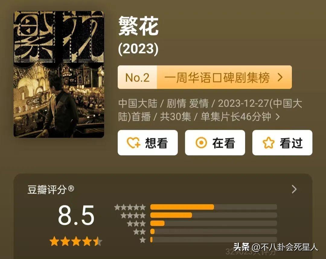 在某平臺上,《繁花》評分高達8.5,近30萬人打分,給出了這個分數,該劇開播後多次登上熱搜,話題熱度持續上升,可以說是“2024開年第一個爆款”。