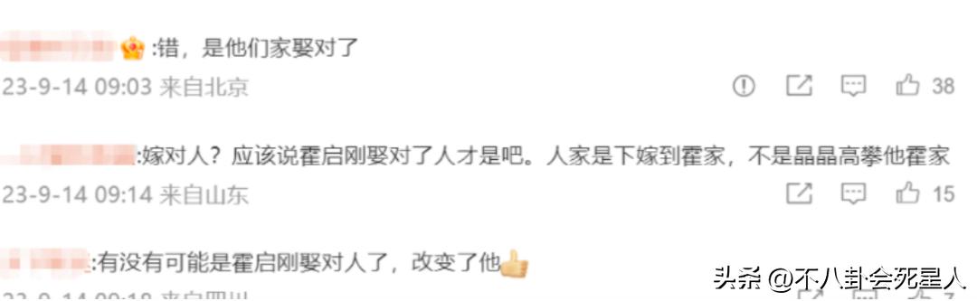 霍啓剛雖然出身百億豪門,但他真正能在國內打響知名度還是因爲娶了“世界冠軍”郭晶晶,而且網友們“愛屋及烏”,對霍啓剛這位“河北女婿”也很有好感。