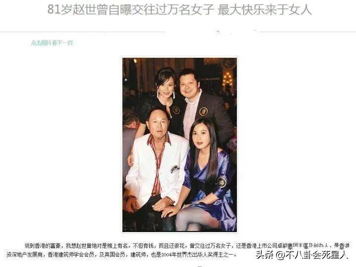 但趙世曾雖然風流卻很有商業頭腦,離開家族“自立門戶”,在80年代末的時候已經賺到了上億身家,如今的身家被預估至少數十億元。