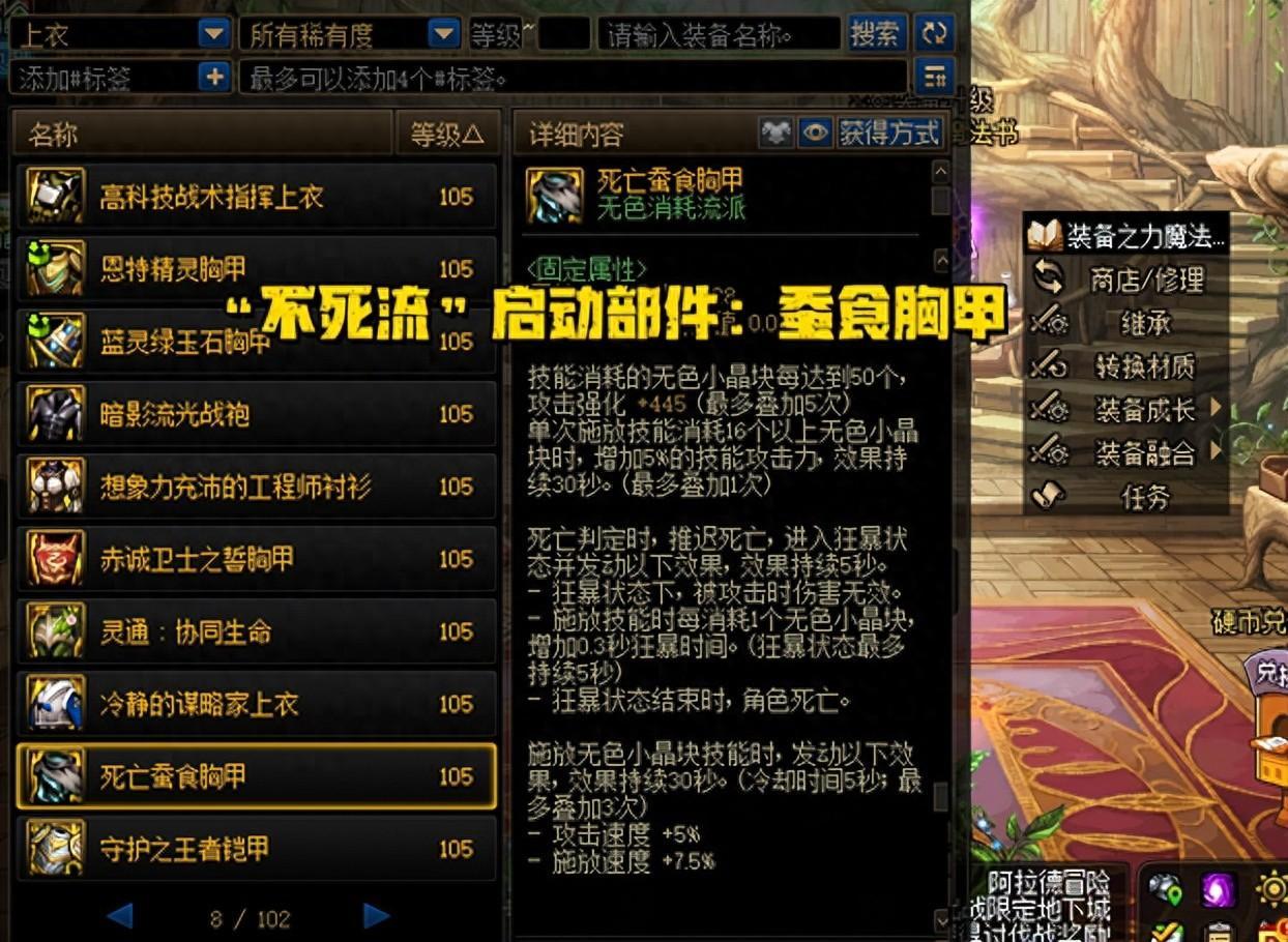 【1,套裝原理】“不死流”的絕對核心是「死亡蠶食胸甲」,當血量歸零後,將進入狂暴狀態(也就是不死狀態),狂暴狀態下每消耗1個無色,持續時間增加0.3秒,最多可持續5秒。