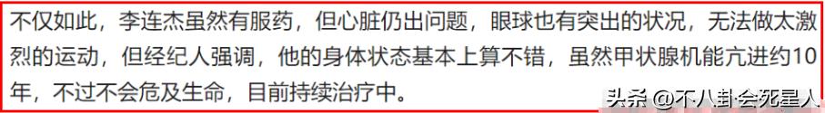 和周潤發一樣,其實李連杰晚年身體方面也出現了問題,他患有甲狀腺亢進,雖然經過治療,但現在每天還是要喫藥,眼球也因此凸出,心臟也有問題,不能做激烈運動。