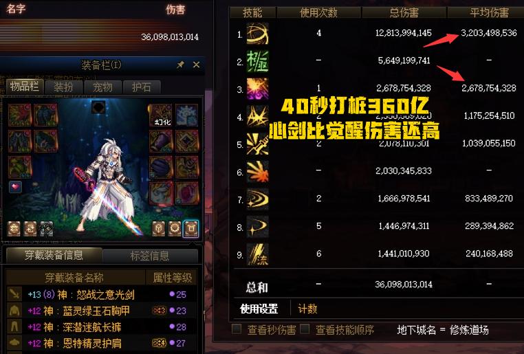 一個覺醒傷害爲26.7億,而一發心劍傷害卻高達32億,而且大家要知道的是,心劍冷卻非常短,極限特化下大概就在10秒左右,40秒就可以用一次心劍!