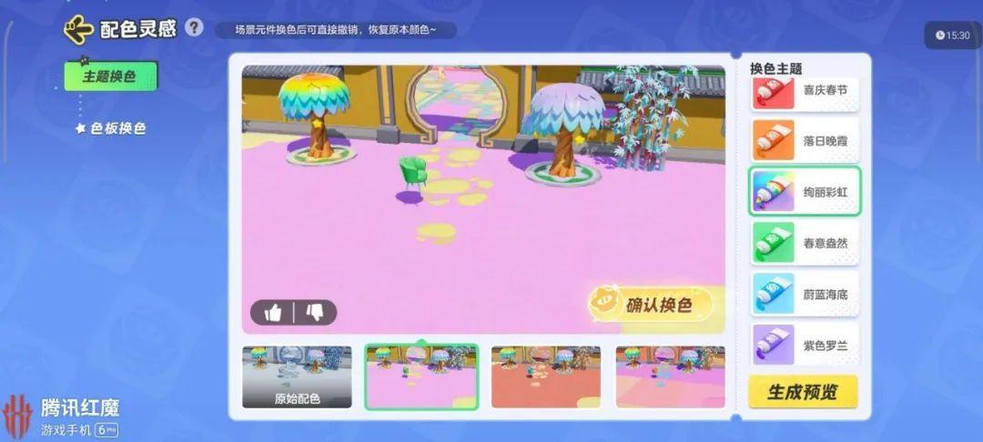 比如引入了AI輔助玩家創作,智能配色功能給那些沒有專業美術素養的玩家提供了大量的創作靈感;而像“元件管理器”“碰撞預覽”這些工具,則給了玩家批量管理大規模組件以及可視化編輯的能力,大幅縮短了場景搭建所需的時間。