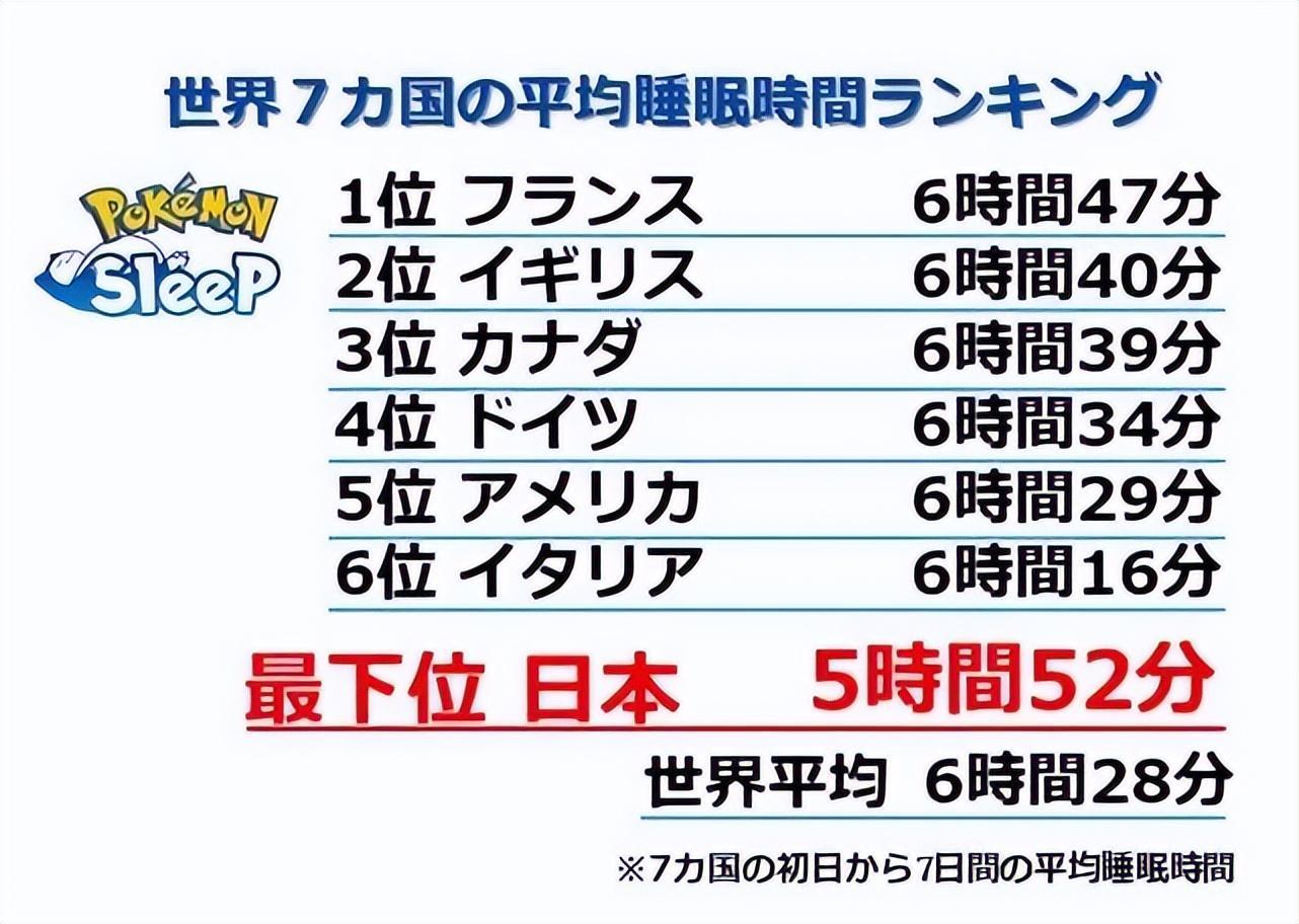 今天《寶可夢Sleep》公佈了全球7個國家用戶的睡眠數據,樣本涵蓋了超過10萬個玩家。