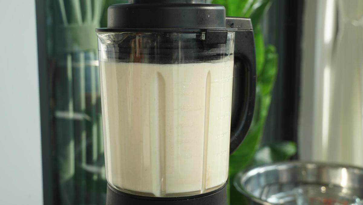 2、然後倒入破壁機中,按1斤黃豆7斤水的比例打成細膩的生豆漿,我這裏一共加了14斤水。