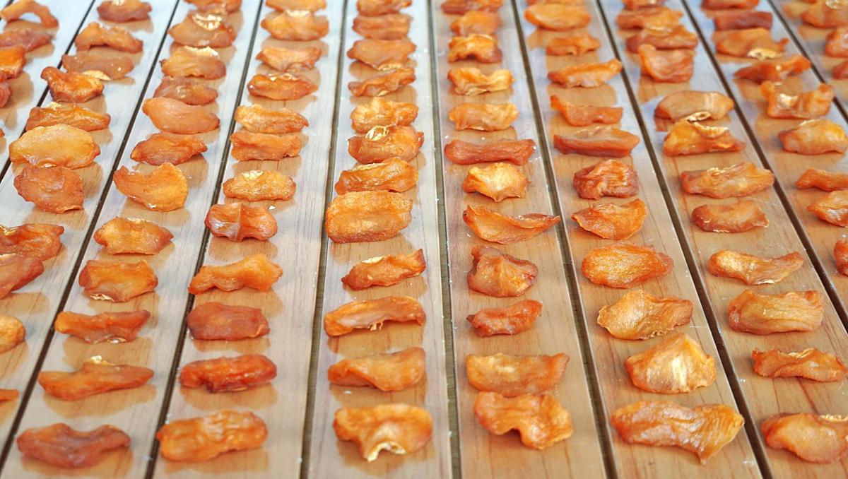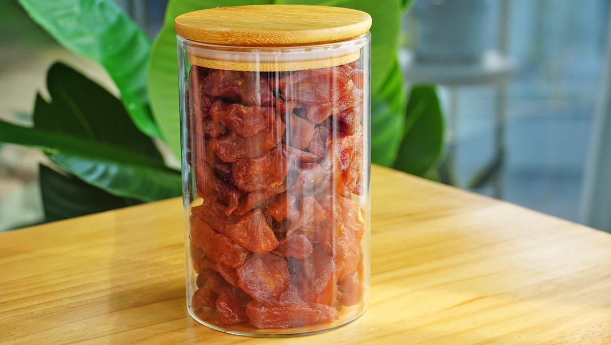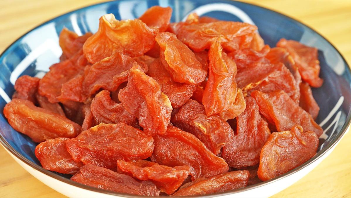 像這樣蘋果乾就做好了,12斤蘋果就出了這麼點蘋果乾,這下終於知道爲什麼果乾兒都賣那麼貴了。