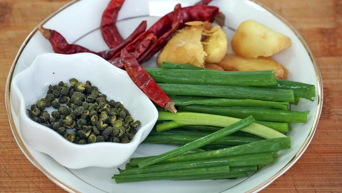 5、接着再來準備點生薑、小蔥、花椒、幹辣椒,滷料的話種類比較多,可以直接用滷料包,沒有話就自己配一點八角、香葉、小茴香。