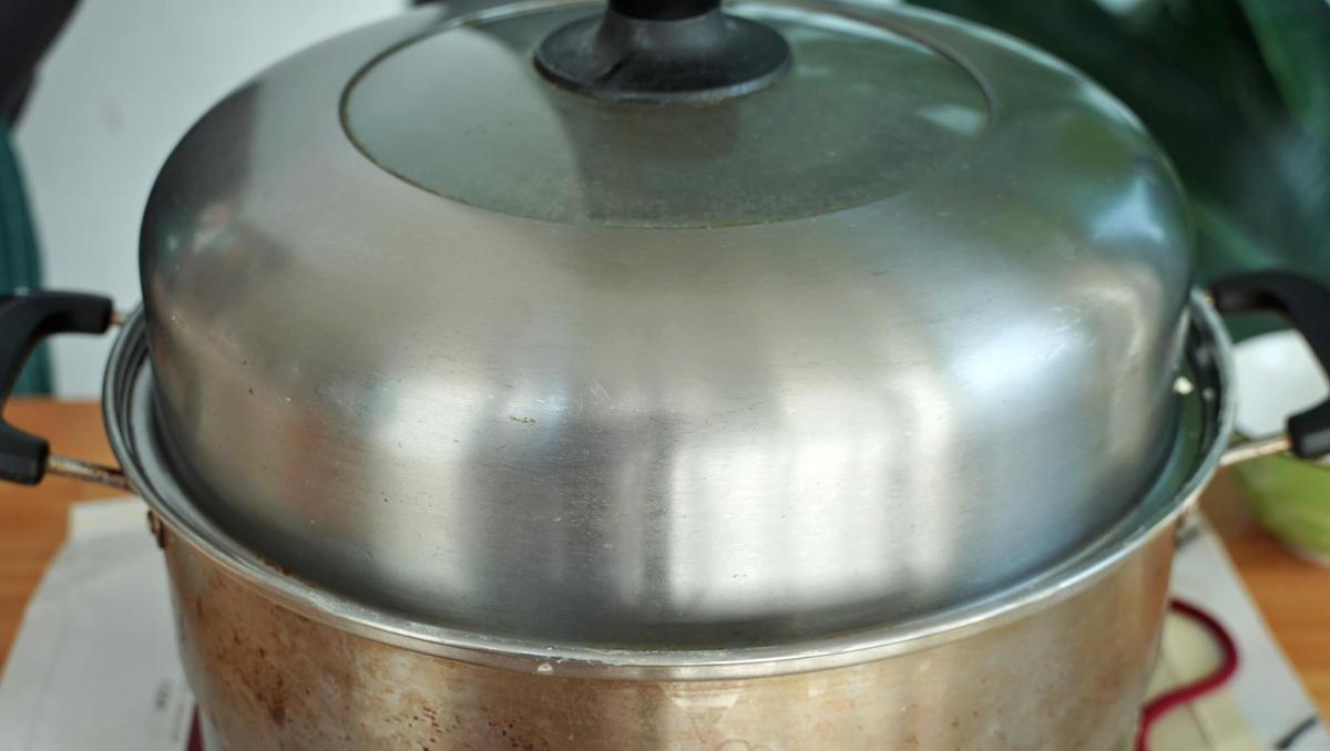 7、再次曬乾後收回來蒸第三次,這是三蒸三曬的最後一次蒸了,同樣的大火蒸20分鐘,倒出來顏色更深了。接着繼續曬最後一遍,太陽大的話再曬個半天就夠了,表面水分曬乾後就可以收起來了。