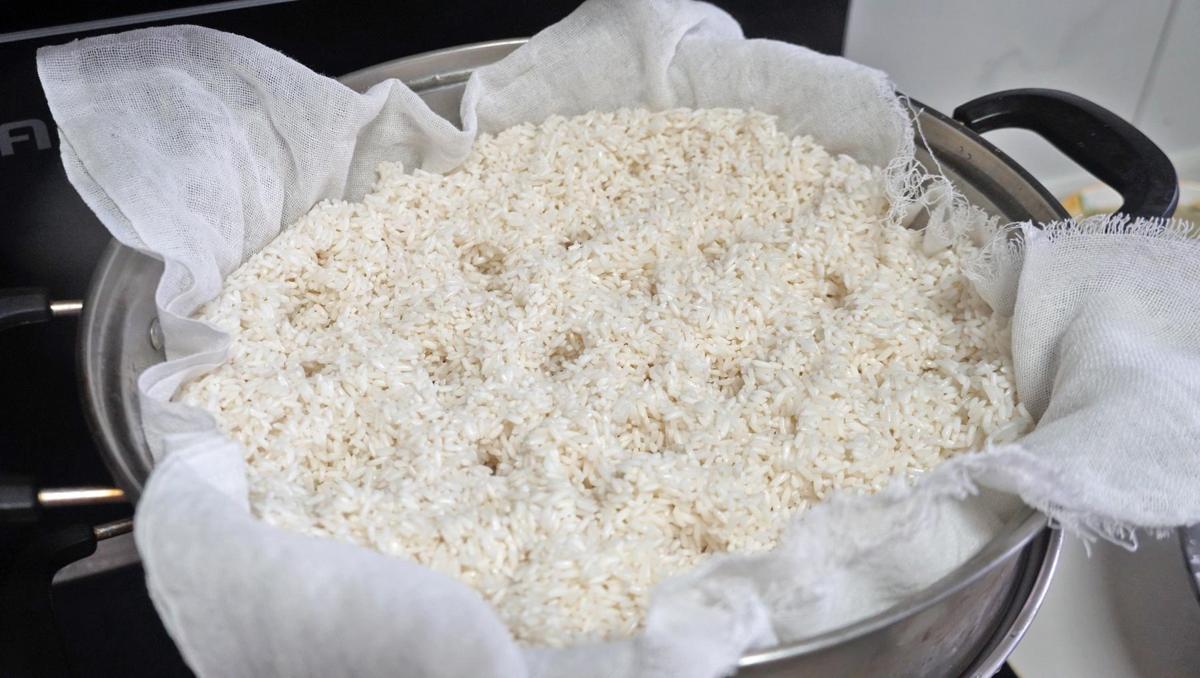 1、3斤糯米,加水先泡一天一夜。倒入蒸鍋,大火蒸1個小時,把糯米要完全的蒸軟蒸熟。