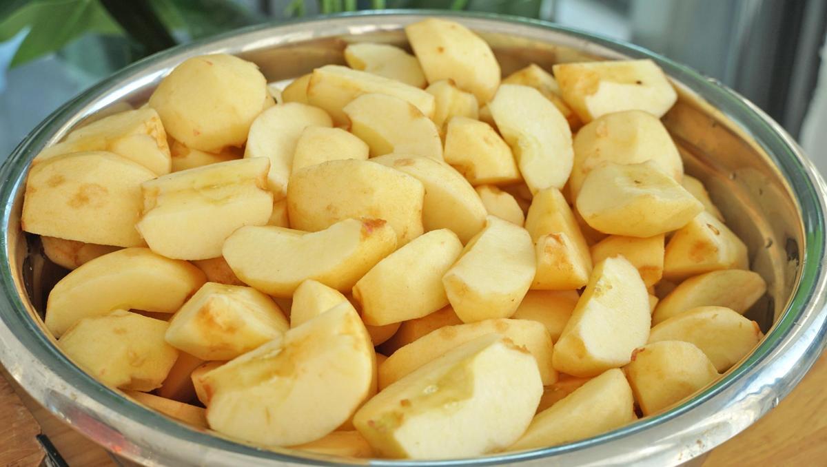 3、開始上鍋蒸,水開蒸30分鐘,把蘋果全部蒸熟。蒸好後取出來放到太陽下面風乾,一塊塊的擺放整齊,然後耐心等待。