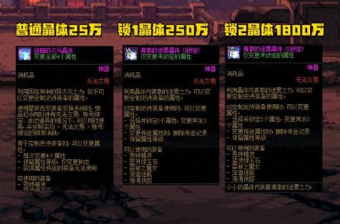需要注意的是,3種詞條晶體均無法交易,甚至“鎖2晶體”還是角色綁定的,小號都不能拿給大號,買之前一定要看清楚信息。