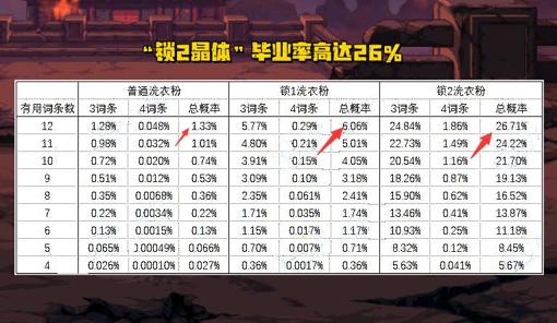 【1】從理論上說,如果某自定義有12個有用詞條,那麼“普通次元晶體”畢業率爲1.33%;“鎖1晶體”畢業率爲6.06%,而“鎖2晶體”畢業率爲26.7%!