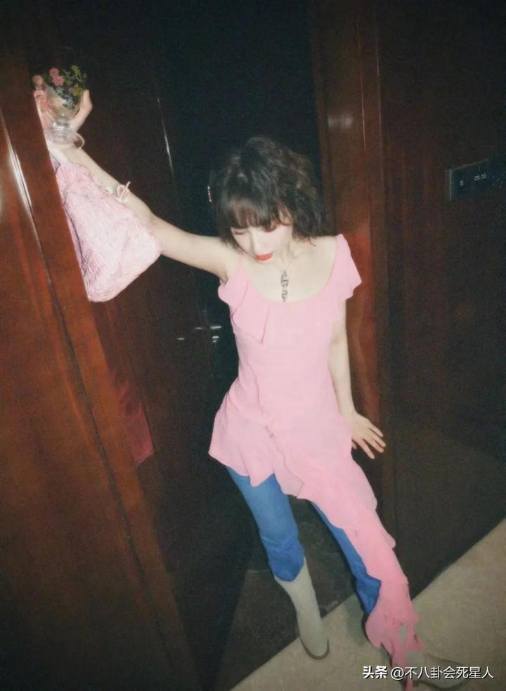最後一套,她穿着粉色上衣搭配牛仔褲,皮膚白皙身材苗條,活力無限,搭配濃脣,又增添了一些嫵媚。
