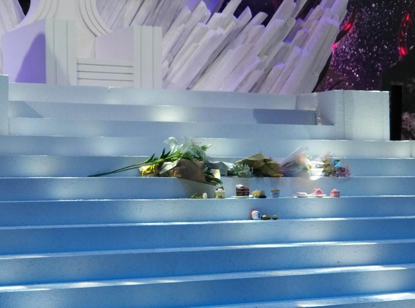 但即便如此,幾乎每個到場的玩家都會對現場的所羅門王座印象深刻——在展覽的第一天,不知是誰在此處的臺階前獻上了一束鮮花,無需留言,大家便都知道這是在祭奠遊戲劇情中一位逝去的角色。