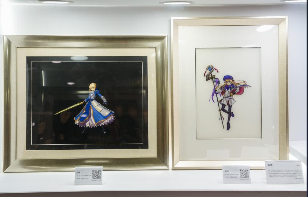 這裏展示了用剪紙、蘇繡等方式,製作的中國特色的FGO主題工藝品。