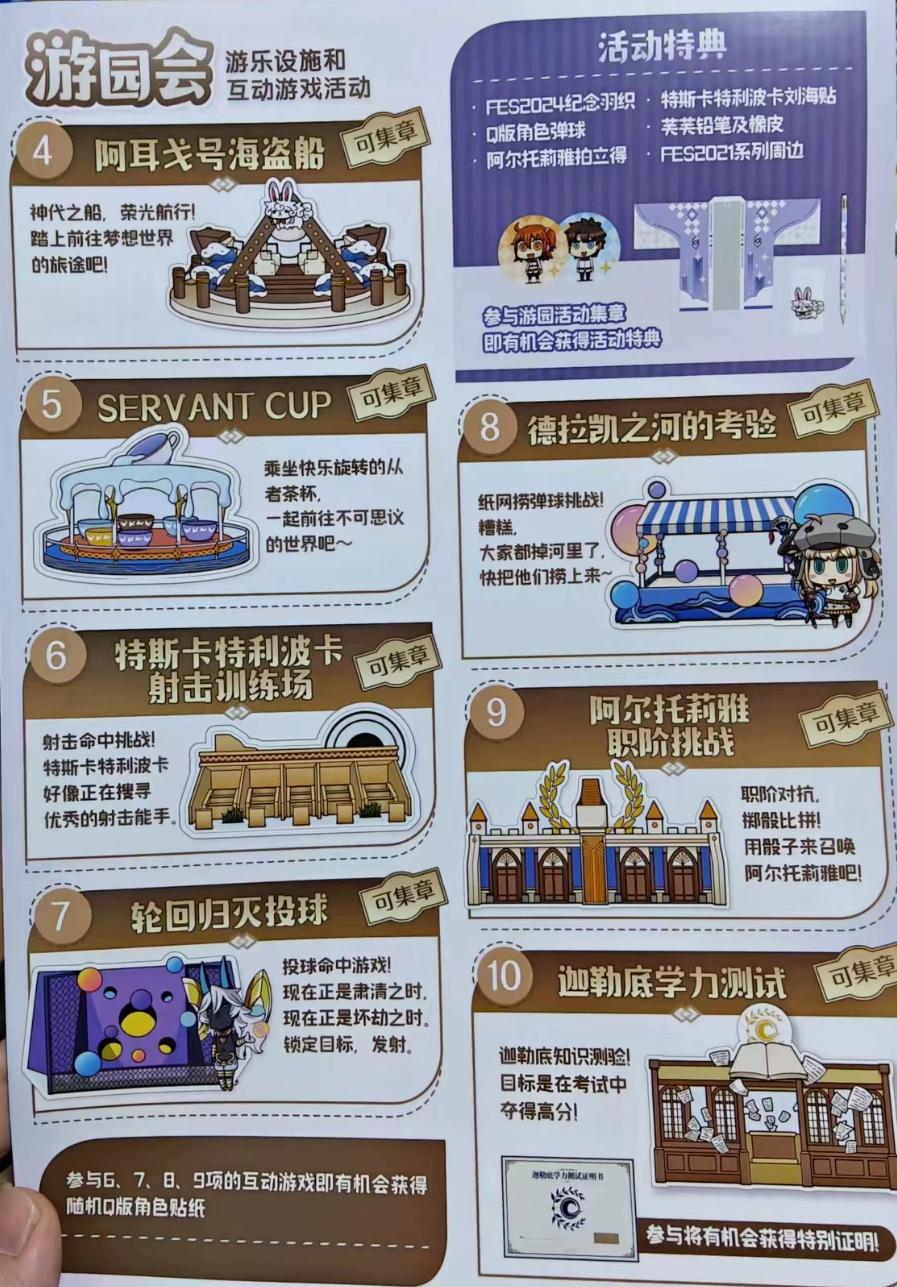 紙網撈球、投球射擊、知識測驗、坐海盜船……這些遊園會上的常見活動,都被融合了FGO的相關元素、冠以“貼合原著”的新名稱。