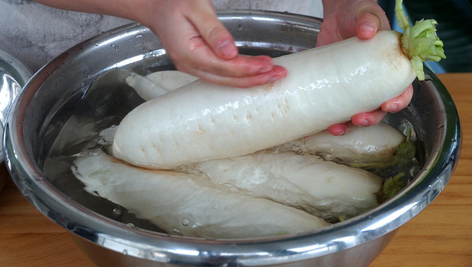 1、蘿蔔一定要加鹽醃製一下,可以祛除蘿蔔裏面的一部分辛辣味,同時也能去一部分裏面的水分。