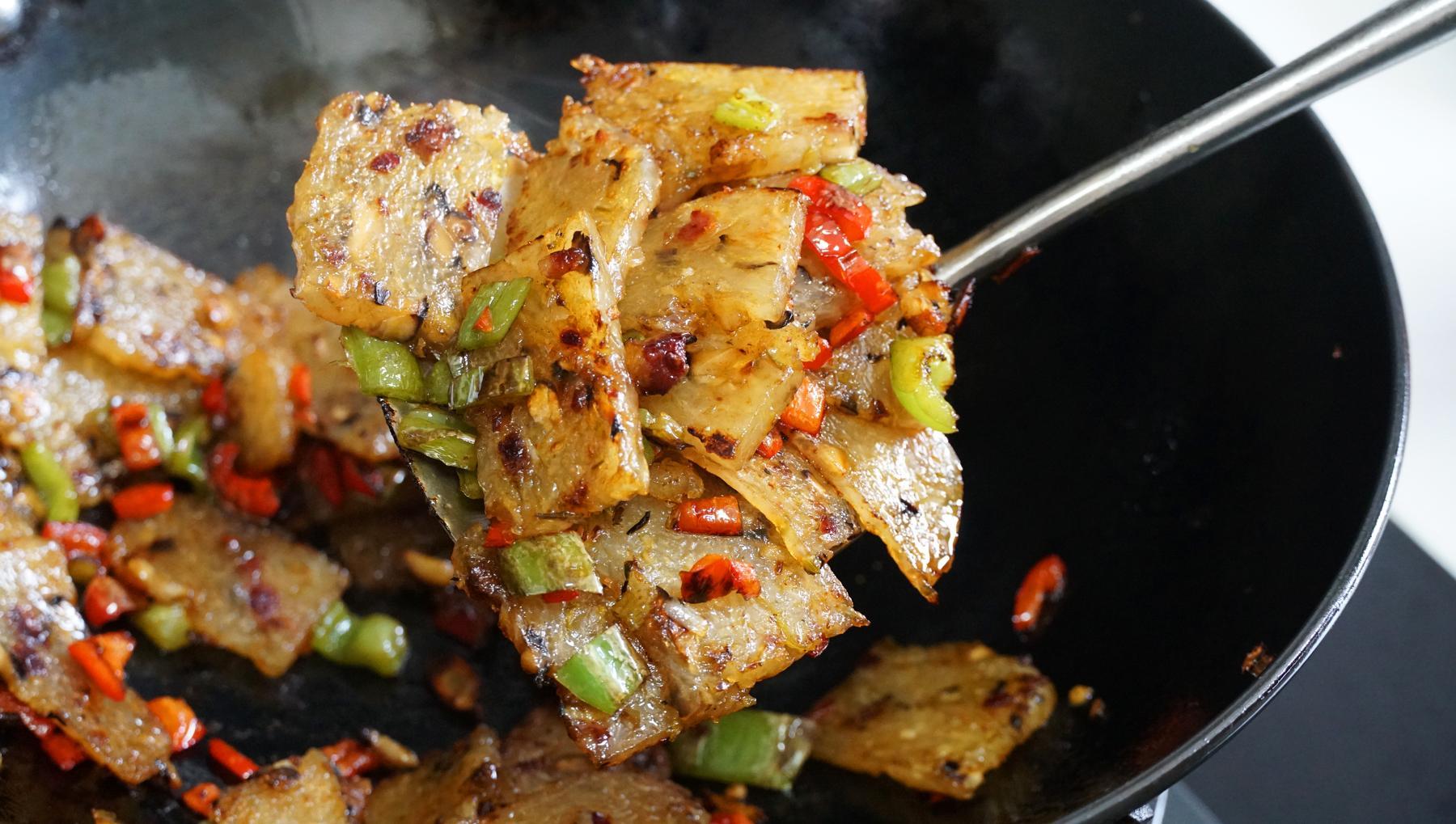 4、然後再放點油煎一下,味道會更香。