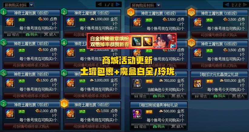 5、商城上架土罐包裹,需要按順序購買,可使用代幣券,8~12階內容相同。