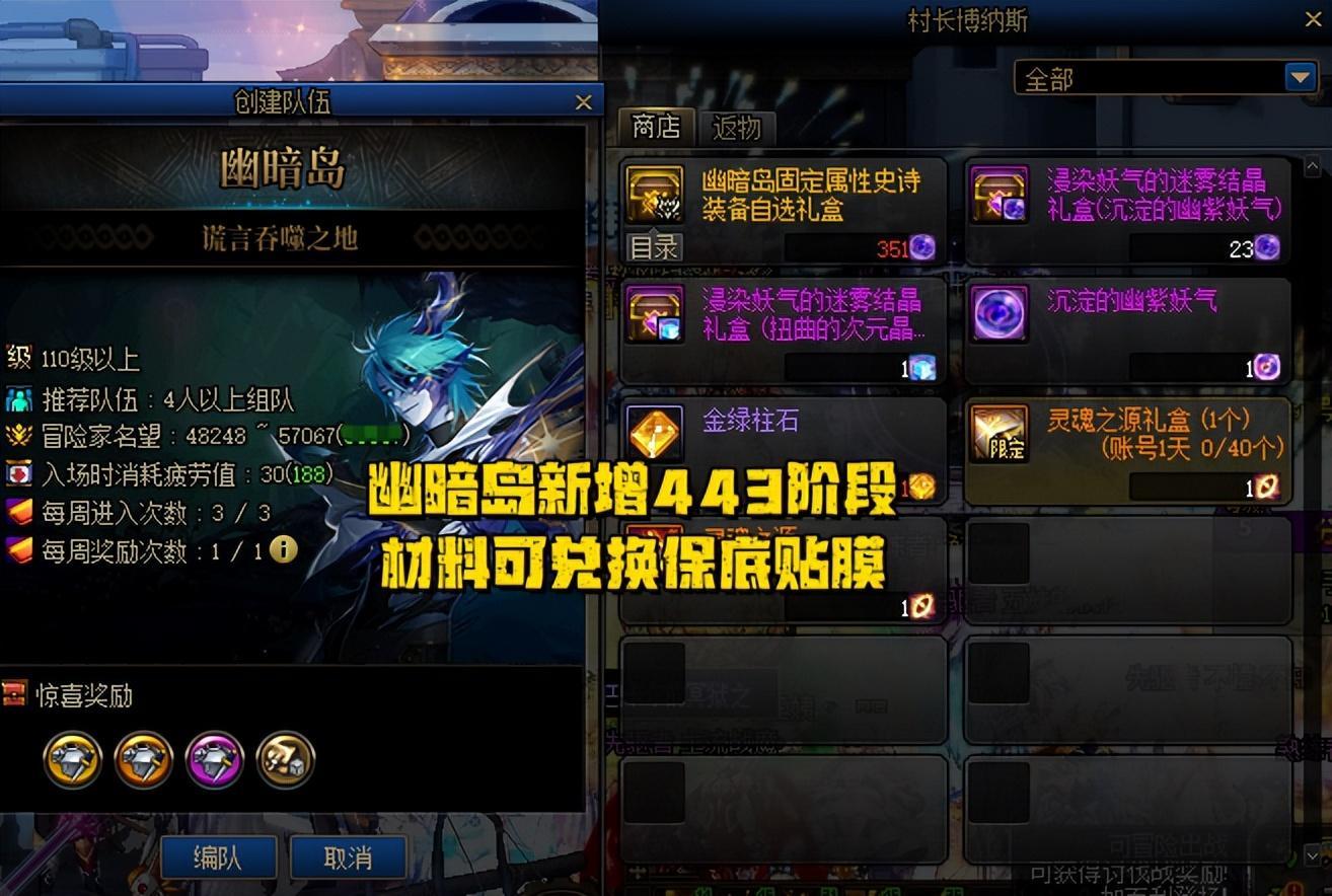 (2)幽暗島新增貼膜自選道具,現在的幽暗島貼膜除了每月一件保底外,就只能隨機掉落;