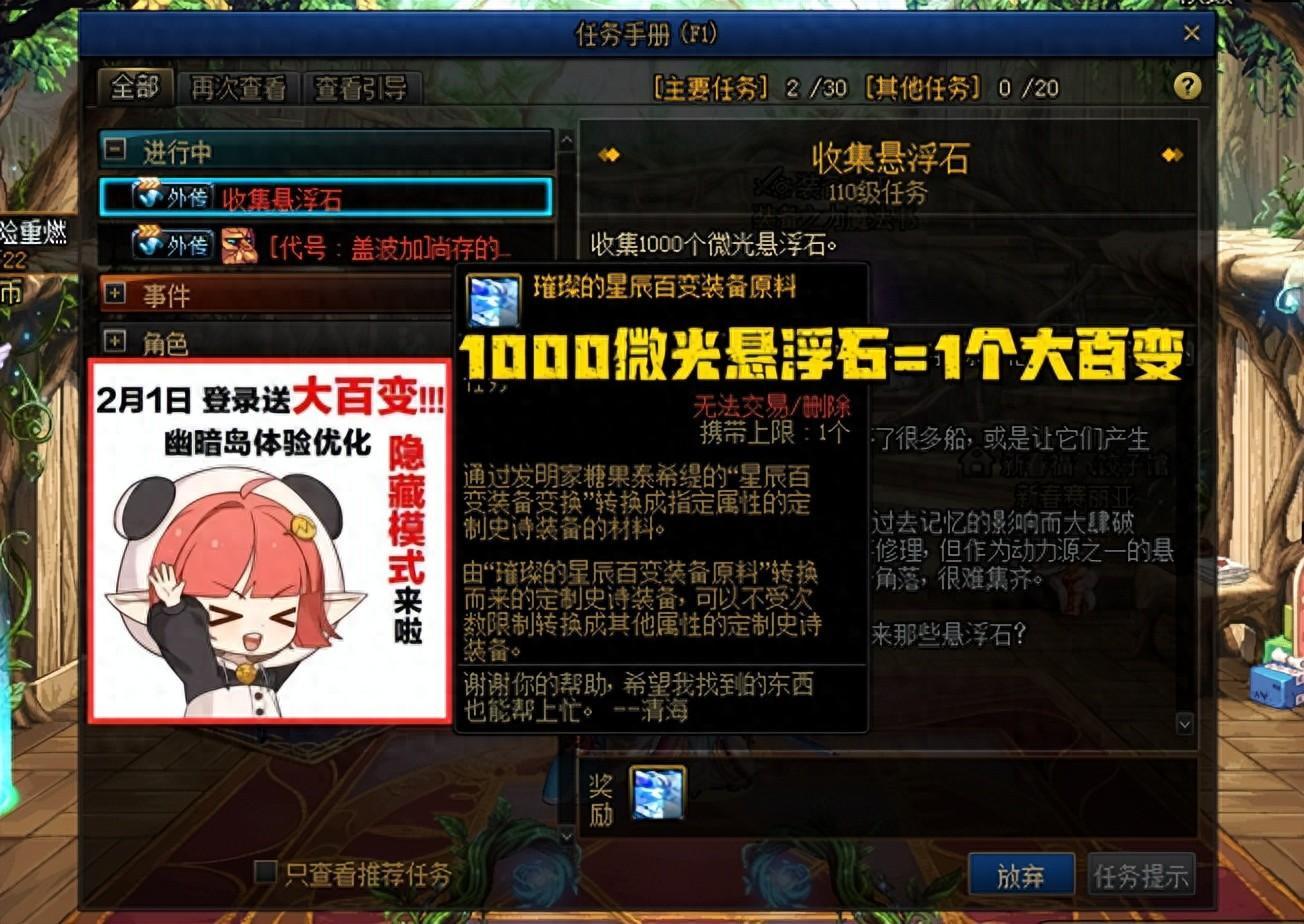 1000個微光懸浮石可直接兌換“大百變”,而且按照小師妹爆料來看,應該是登錄即可領取;
