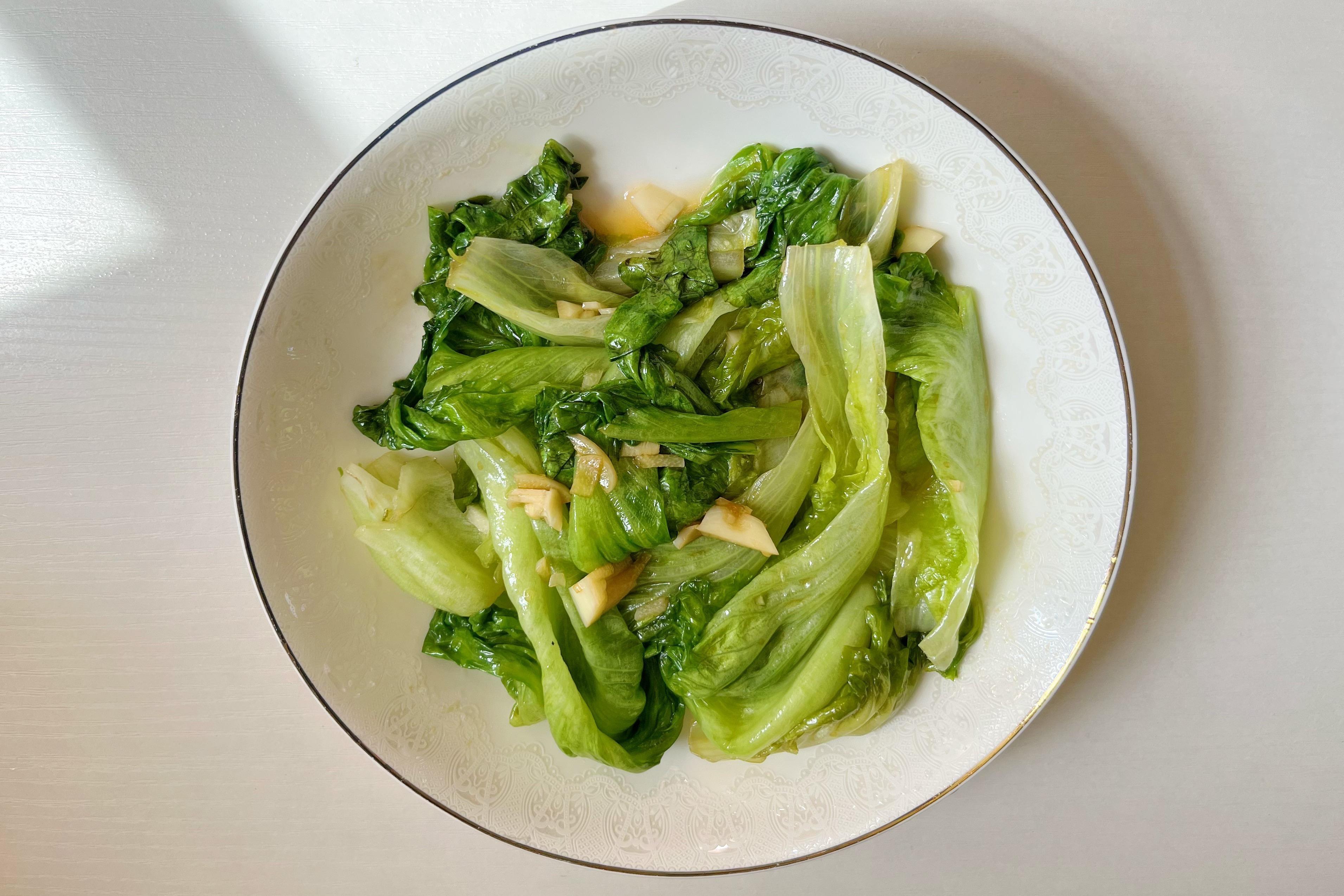 2、鍋中加油,下蒜末爆香,再將生菜加入鍋中;