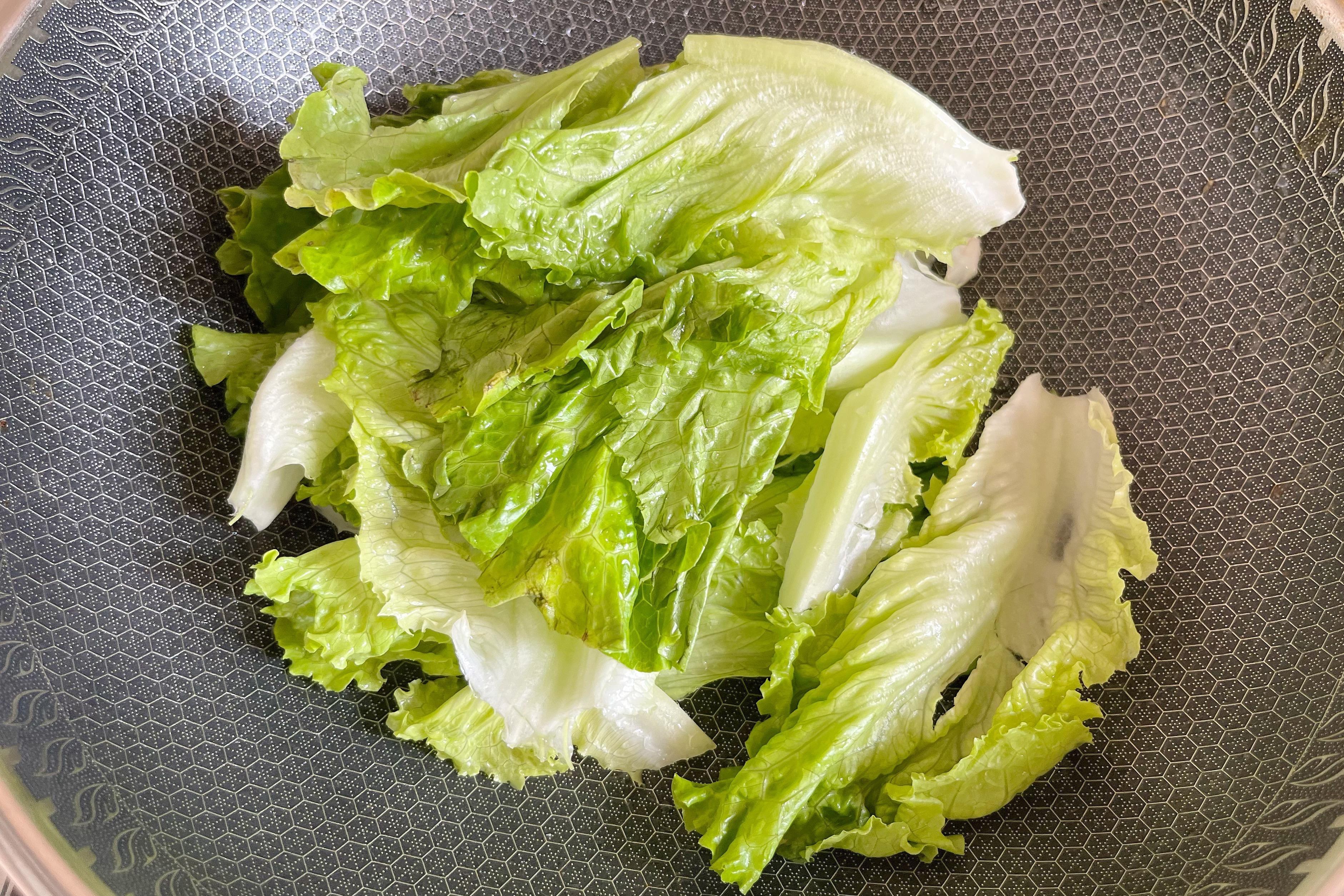 1、生菜掰開洗淨,控幹水分,再切些蒜末調味用;