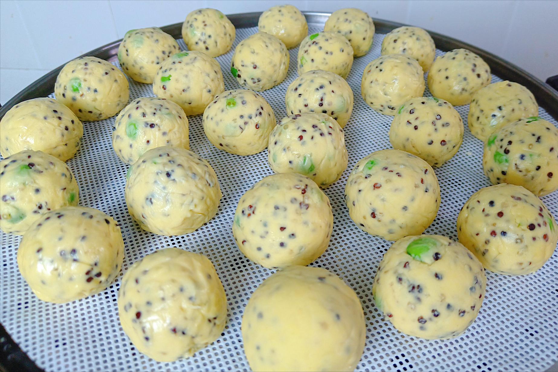 7、水開計時,大火蒸15分鐘就熟了,關火後就可以出鍋了。好看又好喫的藜麥雜糧丸子就做好了;