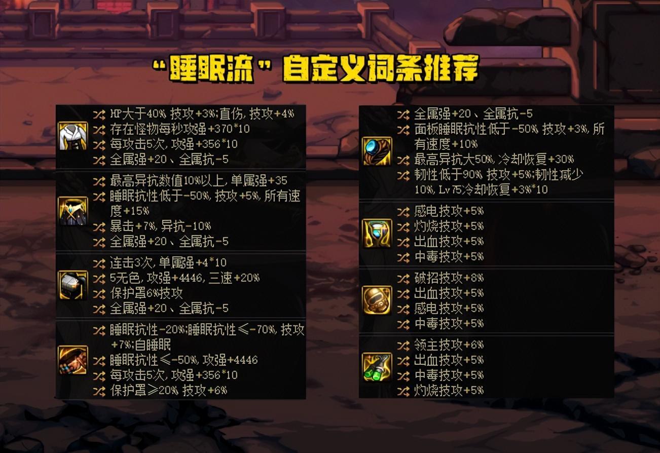 上衣和頭肩推薦詞條和“攻速直傷流”一樣,“睡眠直傷流”相對比較冷門,但實戰效果非常不錯;
