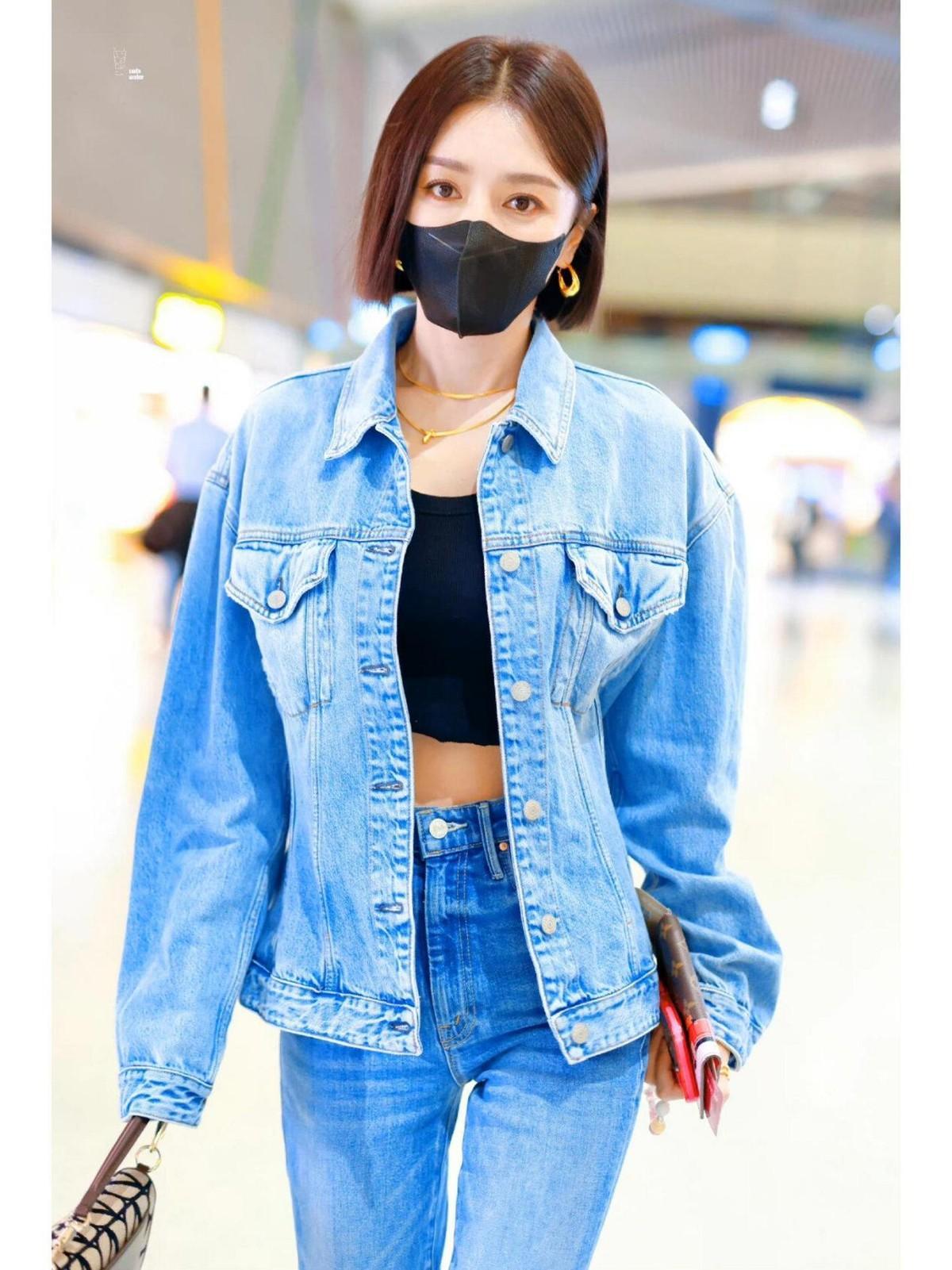 秦嵐她將金色首飾與牛仔套裝搭配,不僅增添了成熟的女人韻味,還讓整體造型更加有層次感。金色耳環配短髮貴氣十足,酷感爆棚,這種搭配方式既個性又時尚。金色耳環作爲一種亮眼的配飾,能夠爲單調的牛仔套裝增添一抹亮色,讓人眼前一亮。