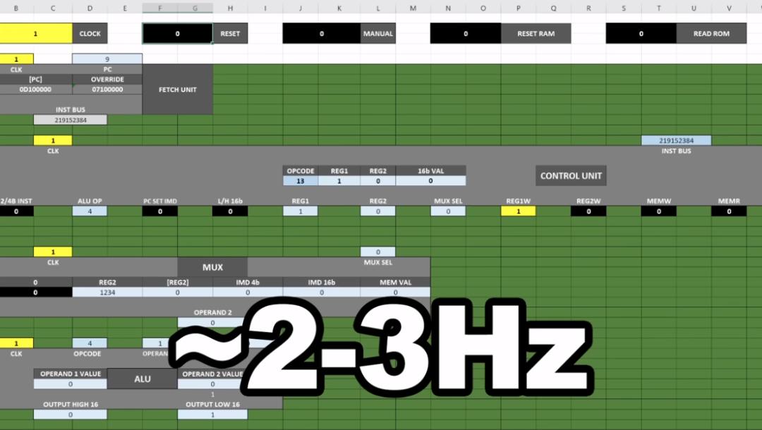利用Excel,他製作出了一個功能齊全的16位CPU