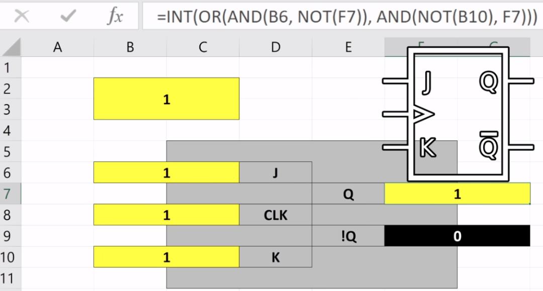 和常規的CPU一樣,作者先是利用了Excel的基本公式實現了特定單元格字符中“0”與“1”的轉化,隨後再利用多個單元格組成了基本的電路單元: