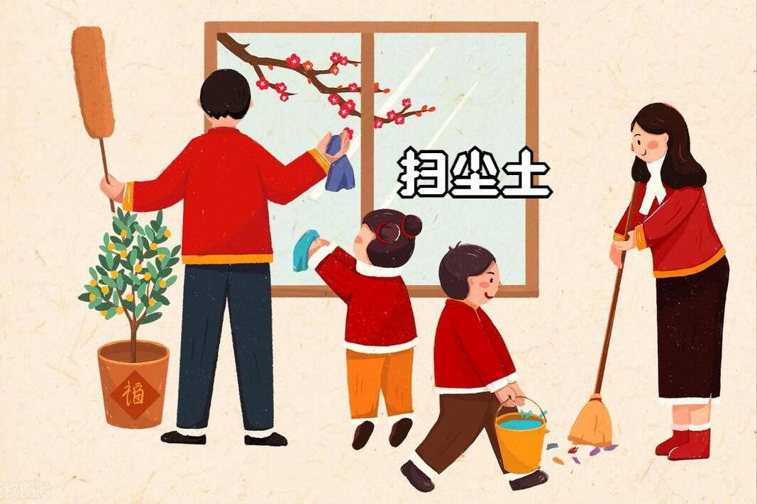 "掃塵土"的習俗無論是北方還是南方,都是一樣的,它意味着該做年終大掃除了。它不光指的掃地拖地擦桌子這些,它還包含着我們平常很少做,或者做不到的一些衛生死角,比如牆面,天花板等。掃塵土並不是單指的掃地,而是讓我們要做一個徹底的大掃除,把家裏收拾打掃的乾乾淨淨迎新年,同時也寓意着除舊迎新,拔除不祥。