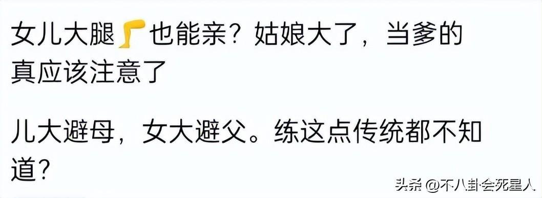 都說“兒大避母,女大避父”,李嫣已經逐漸長大,李亞鵬對女兒大腿又親又摸,實在令人難以理解,還是應該注意一下分寸。