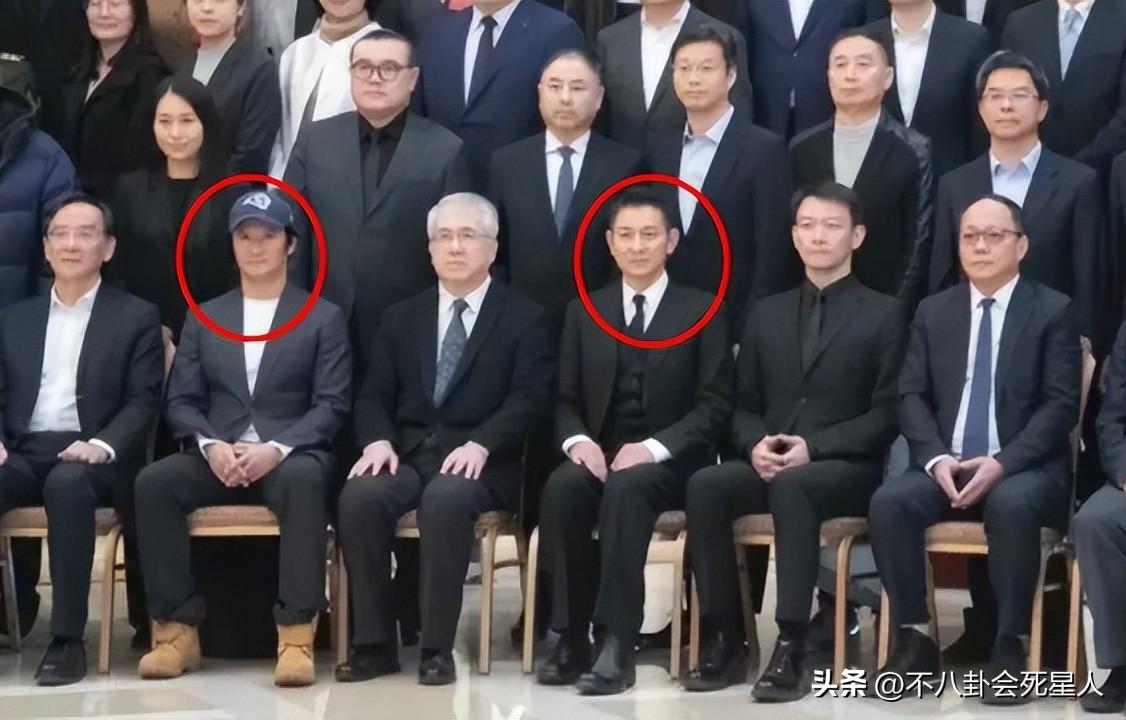 到了大合照的時候,吳京和劉德華中間隔着一個人,但吳京會更靠近C位一點。
