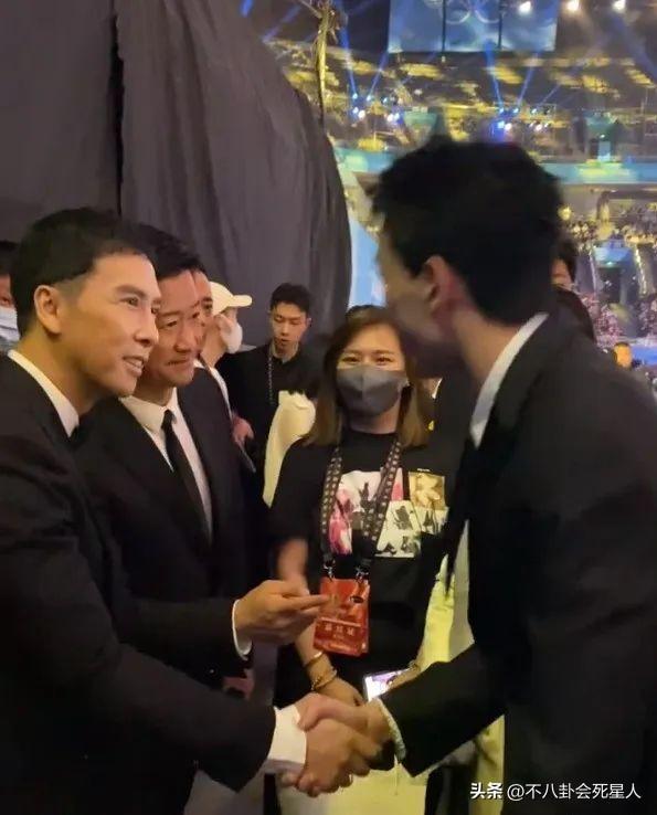 最有意思的是在某次頒獎典禮上,吳京跟旁邊的甄子丹介紹後輩吳磊,甄子丹拘謹彎腰和吳磊握手的樣子,和在旁邊淡定自若的吳京形成很強烈的對比。