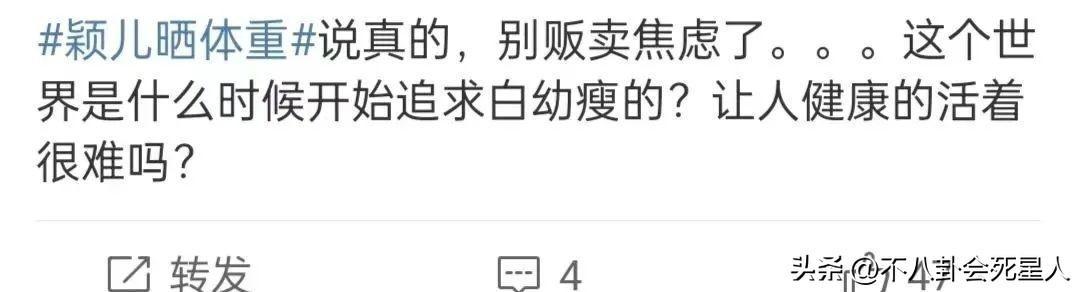 穎兒曬體重上了熱搜,被指販賣焦慮,希望別再這樣,也有人認爲這是爲了拍戲上鏡所需。