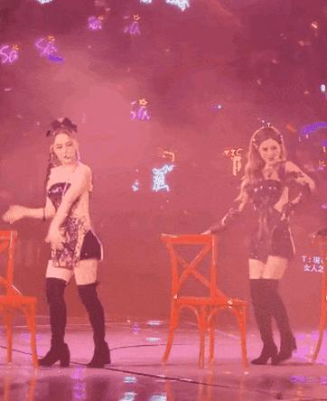 當天,兩人都身穿黑色性感短裙,搭配長款靴子,賣力地跳舞,可舞蹈動作卻略顯喫力。