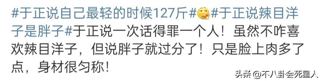 之後,於正再次回應,以辣目洋子爲例,稱他前面的那番話只是爲了激勵趙晴,直言辣目洋子是胖子。