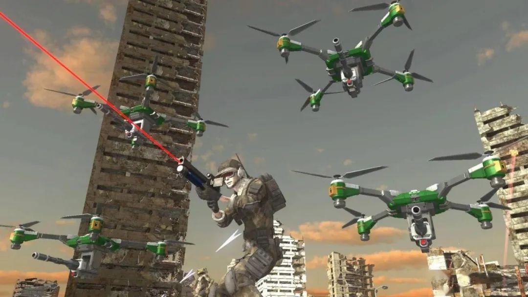 爲了符合設定,也能讓空襲兵發揮他的一技之長,我想出來的主意是,不再讓他呼喚空軍,而是呼喚無人機來到身邊,對他們發號施令,讓他們協助作戰。