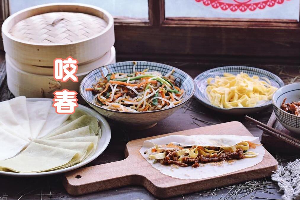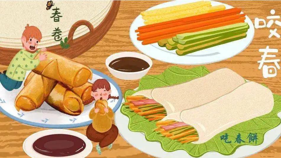 2、咬春:“咬得草根斷,則百事可做”。立春這一天喫春餅、薺菜、蘿蔔等傳統食品,以示新的一年身體健康。
