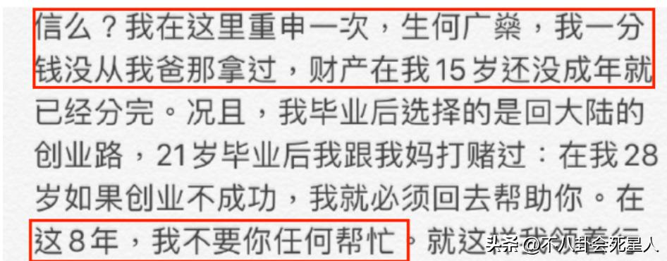 他曾自曝自己放棄了媽媽梁安琪給自己安排價值50億元的家族企業,靠自己創辦了星競電競公司,市值6億元。