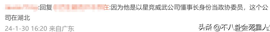 這次很有網友質疑何猷君爲什麼能當選湖北政協委員,其實就是因爲他的星競電競公司就在湖北,他是以星競威武公司董事長的身份當選的。