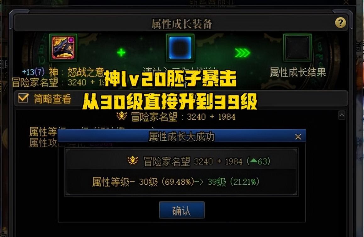 比如你可以把胚子也喂到“神lv20級”,這樣2件神lv20級裝備餵養,如果沒有暴擊,可以升到lv30級,如果暴擊了,則可以直接升到lv35級!