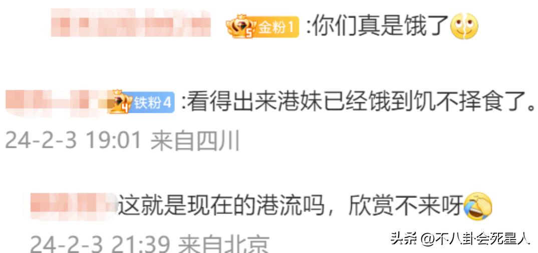 有網友提出質疑,現在的港圈怎麼喫得這麼差?還有網友引用近日熱播劇《如果奔跑是我的人生》裏的吐槽,你真的餓了。